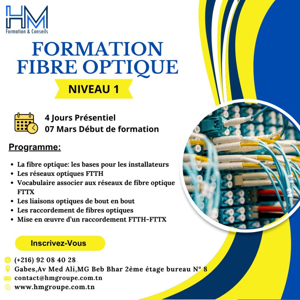 Dispensée par des formateurs chevronnés, notre formation met l’accent sur l’acquisition de compétences techniques avancées, du raccordement des câbles à la compréhension approfondie des technologies de transmission optique. Les participants bénéficieront de séances pratiques intensives, mettant en œuvre des équipements de pointe pour une expérience d’apprentissage immersive.